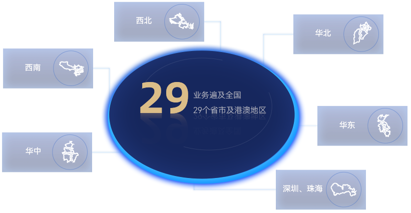 集團堅持以深圳、珠海為核心陣地,輻射華東、華北、西北、西南、華中等區域,業務遍及全國29個省市及港澳地區,構建起“立足灣區、輻射全國”的發展格局,充分利用各地區的經濟潛力和市場需求,聚力推動資源高效整合,全面賦能協同發展。